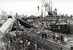 Gegen 8:10 Uhr erreichte der Zug den Bahnhof von Granville. In der Bahnhofseinfahrt entgleiste die Lokomotive, weil die Spurweite aufgeweitet war. Wie später ermittelt wurde, war der Unterhalt des Oberbaus vernachlässigt worden. Die Lokomotive entgleiste, als sie sich unter einer Straßenbrücke, einer Stahlbeton-Konstruktion, befand. Mehrere der Brückenpfeiler wurden dabei weggerissen oder beschädigt. Auch führte das Entgleisen der Lokomotive dazu, dass die folgenden Personenwagen ebenfalls entgleisten. Die Lokomotive und die ersten zwei Wagen rutschten noch unter der Brücke durch. Der erste Wagen löste sich aus dem Zugverband und wurde von einem an der Bahnstrecke stehenden Mast aufgeschlitzt. Dabei starben acht Menschen. Die folgenden Wagen kamen entgleist zum Stehen, der hintere Abschnitt des dritten und der vordere des vierten Wagens unter der beschädigten Brücke, die – ihrer Stützen beraubt – Sekunden später einstürzte. Dabei wurden Autos in die Tiefe gerissen und zahlreiche Reisende in den unter der Brücke zum Stehen gekommenen Wagen von Brückentrümmern zerquetscht.[1] Die beiden Lokomotivführer überlebten. Von den in die Tiefe gerissenen Autofahrern überlebten alle.