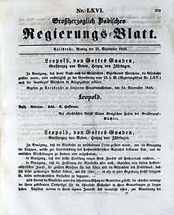 - ↑ Großherzoglich Badisches Regierungs-Blatt Nr. 66 vom 25. September 1848, S. 373.