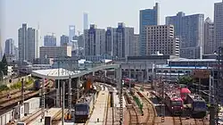 Seit Fertigstellung der Strecke nach Hongkong wird erstmals auch „grenzüberschreitender“ Hochgeschwindigkeitsverkehr angeboten. Die Aus- und Einreiseformalitäten werden gemeinsam im Bahnhof Kowloon West durchgeführt. Hier verkehren täglich 127 Züge mit an Spitzentagen mehr als 100.000 Reisenden.[45][46]