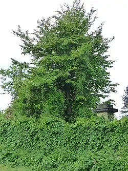 Eisenholzbaum Mozartstraße hinter dem Zaun