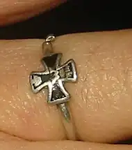 Ring im Eisernem-Kreuz-Motiv für Frauen, die ihren Schmuck für Kriegszwecke spendeten (Rückseite: „Gold gab ich für Eisen“)