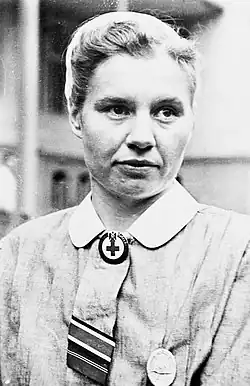 In Einzelfällen wurden auch Frauen mit dem EK II ausgezeichnet. Die Testpilotin Hanna Reitsch bekam als erste Frau 1941 das EK II. Sie wurde 1942 auch als einzige Frau überhaupt mit dem EK I ausgezeichnet. Bei den anderen Frauen, welche das EK II verliehen bekamen, handelte es sich meist um DRK-Schwestern,[13] was auch bei Elfriede Wnuk und Marga Droste der Fall war, die als zweite bzw. dritte Frau ausgezeichnet wurden.[14][15]