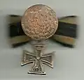 Obwohl die Würdigung militärischer Leistungen im Vordergrund stand, konnten Nichtkombattanten mit dem Eisernen Kreuz zweiter Klasse ausgezeichnet werden. Dieser Personenkreis konnte für seine Leistungen, die nicht mit aktiven Kampfhandlungen im Zusammenhang standen, das Eiserne Kreuz an einem weißen, schwarz eingefassten Band erhalten. Bis 1819 wurden insgesamt 371 Nichtkämpfer mit dieser Auszeichnung beliehen.[9] Als erster erhielt General Anton Wilhelm von L’Estocq das Kreuz II. Klasse. Ihm folgten weitere 36 Offiziere sowie drei fürstliche und sechs zum Hofstaat zählende Personen. Außerdem acht Minister, 23 Oberpräsidenten, Präsidenten und Vizepräsidenten, sieben Diplomaten, 97 sonstige Verwaltungsbeamte, 31 Gutsbesitzer, neun Domänenpächter, 70 Ärzte, 56 Beamte der Militärverwaltung, neun kommunale Beamte, elf Personen aus der Wirtschaft sowie vier Professoren.[10] Im Gegensatz zu Verleihungen für Militärverdienste konnte das Eiserne Kreuz am weißen Band nicht vererbt werden.