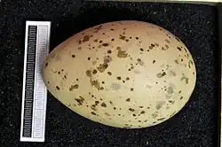 Das Gelege besteht meist aus drei, seltener aus einem oder zwei Eiern von 76 × 53 mm Größe, die auf meist hell grauem, hell blaugrünem oder hell olivfarbenem Grund grau oder dunkelbraun gesprenkelt sind. Im Falle von Gelegeverlust kommt es zu Nachgelegen, die mit zwei Eiern meist kleiner sind. Sie werden von beiden Partnern etwa 27–28 Tage bebrütet.[23]