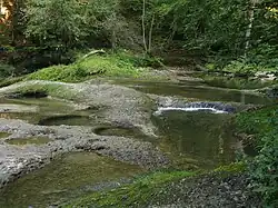 - Zwinger; der Fluss zwängt sich hier durch mächtige Felsblöcke hindurch;