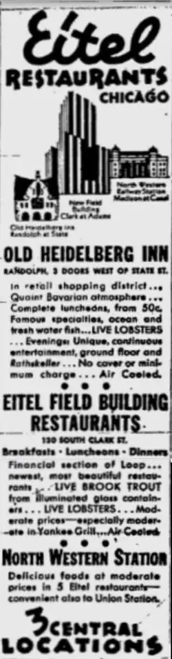 - Ab 1935: Eitel Field Building Restaurant in Chicagos Finanzdistrikt.