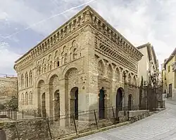Die Portalzone der Nordfassade zeigt drei gleich hohe Hufeisenbögen, die jeweils von halbrunden Blendbögen überfangen werden. Darüber befinden sich sechs Blendfenster mit rot-weißem Steinwechsel in der Art der Mezquita de Córdoba. Die Südfassade ist geschlossen und zeigt alternierende Ziegel- und Bruchsteinstreifen.