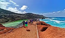 Südlich des ehemaligen Fischerdörfchens El Golfo befindet sich eine der bekanntesten Sehenswürdigkeiten der Insel Lanzarote. Es ist der teilweise im Meer versunkene Krater des Vulkans Montaña de Golfo, in dem sich eine Lagune gebildet hat, die etwa 50 Meter von der Küste entfernt liegt. Die markante grüne Farbe der Lagune entsteht durch einzellige Algen, die sich dem hohen Salzgehalt des Sees angepasst haben. Durch unterirdische Verbindungen zum Meer strömt Meerwasser in die Lagune nach und sorgt für ständigen Ausgleich. Dieses Gleichgewicht der Natur ist seit einigen Jahren aus unbekannten Gründen gestört. Die inzwischen abgesperrte grüne Lagune verdunstet immer mehr und besitzt heute nur noch einen Bruchteil ihrer ursprünglichen Größe. Der Kratersee wird Charco Verde (grüner Teich) oder auch Charco de los Clicos genannt. Letzterer Name stammt von einer essbaren Art Meeresfrüchten, den Clicos, die früher gehäuft an diesem Ort vorkamen.