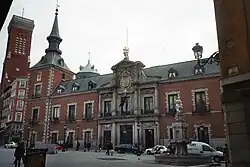 Der Palacio de Santa Cruz liegt an der Plaza de Santa Cruz. Der Palast wurde zwischen 1629 und 1643 erbaut. Charakteristisch für die habsburgische Architektur ist die rote Fassade mit weißlich-umrahmten Fenstern und ähnelt dem Stil der Plaza Mayor. Das Gebäude hat zwei markante Ecktürme mit spitzem Dach. Ursprünglich war das Gefängnis Cárcel de la Corte dort untergebracht. Hier verbrachten Verurteilte die Zeit bis zu ihrer Hinrichtung auf der Plaza Mayor. Ein berühmter Gefangener war der Bandit Luis Candelas, eine Art spanischer Robin Hood. Er wurde im November 1837 hingerichtet.
