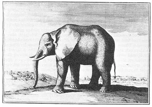 - ↑ Perrault: Description d’un éléphant. In: Histoire de l’Academie royal de Sciences à Paris, 1666–1699; Paris, 1734; S. 91–156, Taf. 1–6. (Zitiert nach: Oettermann (1982), S. 130, Anm. 228)