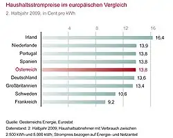 In Österreich liegen die Strompreise sowohl für die Industrie als auch für die Haushalte im europäischen Mittelfeld. Europaweit hat sich das Strompreisniveau seit 2004 allerdings stark erhöht. Im Gegensatz dazu zeichneten sich die österreichischen Strompreise in den vergangenen Jahren durch eine hohe Preisstabilität aus.