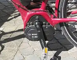 • Bosch E-Bike Systems: Mittelmotoren (mit den Baureihen „Performance Line“ (diese wiederum unterteilt in die Systeme CX, CX-R, CX-Race, Speed), „Active Line“ (mit den Systemen Active Line und Active Line Plus) sowie speziell für Lastenfahrräder die Baureihe „Cargo Line“)[35][36][37]