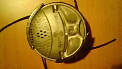 Bei einer Klebesicherung wird ein meist schwarzes Modul mittels eines fest haftenden Klebepads am Objekt angebracht. Dieses Modul ist durch ein Kabel mit einem Gegenstück verbunden, das wiederum an dem Regal oder Auslagetisch befestigt ist, auf dem die zu sichernde Ware liegt. Bei Manipulation (z. B. Durchschneiden das Kabels, Entfernen des Moduls) wird ein Alarm ausgelöst.[3] Zum Schutz vor Manipulation befindet sich am Modul ein kleiner Knopf, der durch ein Loch im Klebepad beim Anbringen an das Objekt betätigt wird. Bei Entfernen des Pads ist der Knopf nicht mehr gedrückt und es wird Alarm ausgelöst. Bei Handys wird oftmals ein zweites, kleineres Klebemodul mit gleicher Funktion auf der Vorderseite angebracht, um sowohl das Handy selbst als auch die abnehmbare Rückseite des Gehäuses zu sichern.