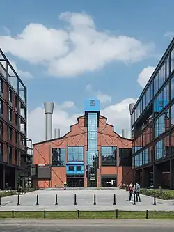 Dienstleistungsbereiche und Foodcourt (mit rund 30 Restaurants und mehreren Bars) befinden sich im ehemaligen Maschinenhaus, das mit dem vormaligen Kesselhaus verbunden wurde.[1] Hier befindet sich auch das viergeschossige Einkaufszentrum, dessen Atrium mit einer durchbrochenen Metallkonstruktion ausgefüllt ist, über dem die historischen Kohlesilos hängen. Es wurden viele ursprüngliche Bauteile wiederverwendet und auch Einschusslöcher aus dem Krieg blieben erhalten.[2]