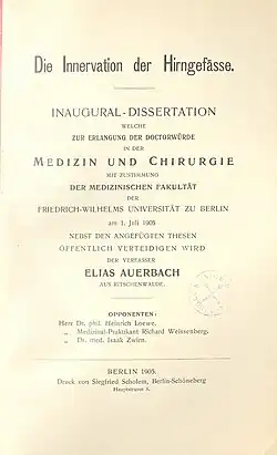 - Die Innervation der Hirngefäße. Berlin, Univ., Diss., 1905