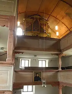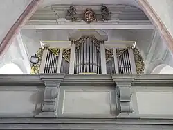 II/P | 22 | Prospekt teilweise erhalten, 2000 Neubau Rieger Orgelbau (III/P/44) im Stil von Cavaillé-Coll |