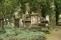 - ↑ Der östliche Rand des Friedhofs ging ursprünglich bis zu den heutigen Straßenbahnschienen.