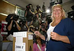 Carrió trat als Kandidatin für den Zusammenschluss Coalición Cívica[4] erneut bei der Präsidentenwahl 2007 an. Im März 2007 trat sie als Abgeordnete zurück, um ihre Wahlkampagne zu führen.[5] Zusammen mit Rubén Giustiniani, dem Vorsitzenden der Sozialistischen Partei, erreichte sie 23 % der Stimmen und wurde damit Zweite nach Cristina Fernández de Kirchner. Sie erzielte die Mehrheit in Buenos Aires und Rosario, unterlag aber in der Provinz Buenos Aires.[6]