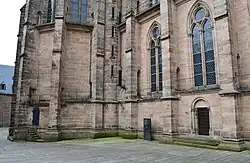 2009 konnten im Bereich der Nordkonche größere Abschnitte des mittelalterlichen Baus freigelegt werden, der durch eine Abweichung von der Ost-West-Ausrichtung um 20,5° auffällt. Die darüber erbaute Elisabethkirche weist lediglich eine Abweichung um 7° auf. Die Maße des entdeckten Steingebäudes betragen 28,60 × 10,50 Meter, direkt östlich schließt eine Kapelle mit halbrunder Apsis an. Im Westen konnte der 10,50 × 10,50 Meter große Umriss eines quadratischen Turmes freigelegt werden.[17] Bei der Neugestaltung des umgebenden Areals wurden zwei verschiedene Bodenbeläge gewählt und eine Informationstafel angebracht, um auf die Grabungsergebnisse hinzuweisen.