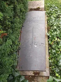 Seit Ende Juni von einem neuen Schub der Multiplen Sklerose ans Bett gefesselt, starb sie schließlich am 25. Juli 1950 nach zehntägigem Koma im Karlsruher St. Vinzenz-Krankenhaus.[7] Sie wurde auf dem Alten Friedhof in Darmstadt bestattet (Grabstelle: IV C 92).
