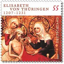 Elisabeth von Thüringen, auch Elisabeth von Ungarn (ungarisch Árpád-házi Szent Erzsébet) genannt (* 1207[1] in Pressburg[2][3] oder in Sárospatak, Königreich Ungarn,[4] auf Burg Rákóczi; † 16.[5] oder 17. November 1231 in Marburg an der Lahn[2]) war eine Tochter des Königs Andreas II. und Gertruds von Andechs. Sie war durch Heirat Landgräfin von Thüringen.[6]