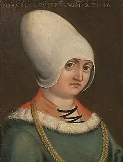- ↑ So der Artikel zu Elisabeth in: Brigitte Hamann (Hrsg.): Die Habsburger, S. 85; abweichend geben Hans und Marga Rall (König Ruprecht von der Pfalz, in: Gerhard Hartmann, Karl Rudolf Schnith (Hrsg.): Die Kaiser, 1996, ISBN 3-222-12421-3, S. 446) den 31. Dezember 1409 als Elisabeths Todesdatum an.