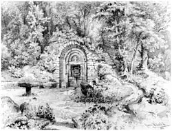 Der Wartburgarchitekt Hugo von Ritgen gestaltete bereits 1851, noch in den Anfangsjahren der Wartburgrestaurierung den Elisabethbrunnen zu einer kleinen Gedenkstätte für die Heilige Elisabeth um. Vor die Felspartie und die Mauerreste setzte er eine grottenartige Einwölbung, die er mit zwei Säulchen vom Warttburgpallas schmückte. Zugleich sorgte er für eine Reinigung des Brunnenschachtes und sicherte so die Wasserversorgung der Burg. Bis zum Bau der Wartburg-Wasserleitung war der Elisabethbrunnen die wichtigste Trinkwasserquelle der Burg.[5]