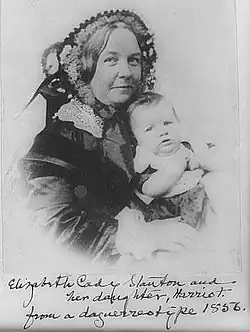 Die junge Frau Elizabeth Cady traf Henry Brewster Stanton wegen ihrer frühen Beteiligung an der Temperenzler- und der Abolitionisten-Bewegung. Stanton war ein Journalist, ein Redner gegen die Sklaverei und nach seiner Heirat mit Elizabeth Cady ein Anwalt. Trotz der Vorbehalte des Vaters Daniel Cady ging das Paar 1840 die Ehe ein. Elizabeth bat dabei den Geistlichen, dass die Phrase „promise to obey“ („verspreche zu gehorchen“) vom Heiratsversprechen entfernt werde.[17] Sie schrieb später dazu: “I obstinately refused to obey one with whom I supposed I was entering into an equal relation.”[18] (deutsch: „Ich weigerte mich hartnäckig, jemandem zu gehorchen, mit dem ich eine Beziehung unter Gleichen eingehen sollte.“) Das Paar hatte sechs Kinder im Zeitraum zwischen 1842 und 1856. Vier Jahre später kam noch eine „ungeplantes“ siebtes Kind dazu.[19] Eine Tochter war die Publizistin Harriot Eaton Stanton Blatch, welche die Arbeit ihrer Mutter als Frauenrechtsaktivistin fortführte.