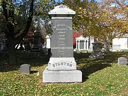 Stanton starb am 26. Oktober 1902 an Herzversagen in ihrem Haus in New York City, 18 Jahre bevor die Frauen in den Vereinigten Staaten das Wahlrecht garantiert bekamen. Sie wurde im Woodlawn Cemetery in The Bronx, New York City, begraben; auf ihrem Grab befindet sich ein Grabmal für ihren Ehemann und sie.[71]