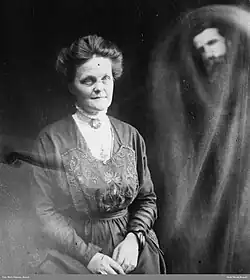 Ella Ankers Interesse am Spiritismus wurde schon in ihrer Kindheit geweckt. Als sie „acht Jahre alt war, hörte sie in Sagatun einen Vortrag von Bjørnson über den sechsten Sinn und über Visknut, einen Mann aus Gudbrandsdalen, der Hellseher war. […] Dies wurde der Ausgangspunkt für ihr späteres Interesse am Übernatürlichen. Kurz nach dem Tod ihres Mannes im Jahr 1908 nahm sie selbst aktiv am Spiritismus teil. Sie las, schrieb und praktizierte den Spiritismus und gehörte 1913 zu den Gründern der Selskapet for Psykisk Forskning“ (Gesellschaft für Psychische Forschung).[3] Aus dem Nachlass dieser Gesellschaft ist eine Reihe Spiritistischer Fotografien erhalten geblieben, auf denen die Porträts Lebender von Phänomenen angeblich paranormalen Ursprungs belästigt werden.