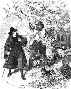 - ↑ Raabe schreibt über den Pfarrer: „Seine Gemeinde..., gepackt und geschüttelt vom Wahnsinn der Zeit – seine Gemeinde, außer sich, toll, rasend, wußte nichts mehr von irgendeinem Band, das sie an Himmel und Erde fesselte.“ (Verwendete Ausgabe, S. 556, 20. Z.v.o.)