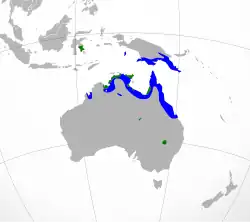 Der Lebensraum sind vor allem Mangroven, daneben auch küstennahe Flüsse, Seen, Sümpfe und Reisfelder. Der Elsterreiher brütet entlang der Nordküste Australiens und im Süden der indonesischen Insel Sulawesi. Außerhalb der Brutzeit findet man ihn auch auf Neuguinea und den Molukken.