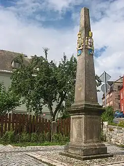 - Kursächsische Postdistanzsäule von 1729 in Elterlein (Originalstandort: Marktplatz)