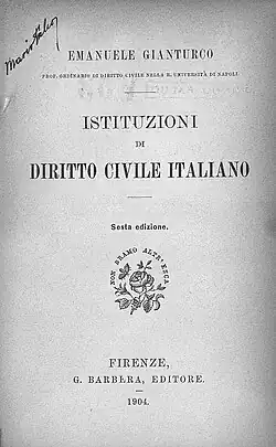 - ↑ Andrea Raffaele Amato: Due anime del Realismo giuridico italiano: l’ammissibilità della fiducia testamentaria in una celebre controversia tra Emanuele Gianturco ed Enrico Cimbali negli anni Ottanta dell’Ottocento. In: Quaderno di storia del penale e della giustizia. Band 5, 2023, ISSN 2704-7148, S. 105–161, doi:10.13138/2704-7148/3750 (unimc.it [abgerufen am 28. Dezember 2024]).