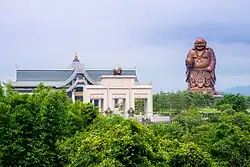 Ein beliebtes Ausflugsziel Emeis ist der Dapu-Stausee, auch: Emei-See (峨眉湖 Emei hu). An seinem östlichen Ufer liegt ein bedeutendes religiöses Zentrum und eine touristische Attraktion, die Anlage Nature Loving Wonderland (大自然文化世界 Daziran Wenhua Shijie). Sie besteht aus einem dem Buddha Maitreya (彌勒佛 Mile Fo) gewidmeten buddhistischen Tempel (天恩彌勒佛院 Tian’en Mile Fo Yuan) und einem umliegenden Park. Das Wahrzeichen der Anlage ist eine 56,70 m hohe Bronze-Figur des Buddha.[4]