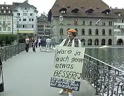 Ab Ende der 1980er-Jahre war Manser auf der Strasse mit umgehängten Kartonschildern mit Sprüchen wie «ist mir grosse Ehre von gleicher Sorte zu sein» anzutreffen. Auch absichtlich falsch geschriebene wie «Blakat nur für gehobene Kreise» oder «Glück für Sie: betle ganzen Januar zum Halben Breis» und «Badzeli oder Ich <<singe>>».