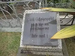 Im Jahre 1856 wanderte der junge Student der Universität Greifswald Emil Odebrecht mit seinen Studienfreunden Heinrich Kreplin und Gustav Mellenthin nach Brasilien aus.[2] Er ließ sich in der deutschen Kolonie Blumenau im brasilianischen Bundesstaat Santa Catarina, südlich von São Paulo, nieder. Dort lernte er den aus Hessen stammenden Apotheker Hermann Blumenau kennen. Er war Gründer der deutschen Kolonisation in Santa Catarina und riet Emil Odebrecht, nach Greifswald zurückzukehren, um seine Studien abzuschließen. Nach seiner Rückkehr nach Südamerika wurde er zu einem Pionier der deutschen Einwanderung in Santa Catarina und in Paraná. Als Vorfahre des brasilianischen Firmengründers Norberto Odebrecht, der knapp hundert Jahre später, 1944, in Salvador da Bahia eines der größten Bauunternehmen weltweit gründen sollte, wurde Emil Odebrecht in ganz Brasilien berühmt.[3]