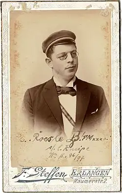 Als Sohn eines Fabrikbesitzers besuchte Roesle das Jean-Paul-Gymnasium Hof. Nach dem Abitur studierte er ab dem 2. Mai 1896 an der Friedrich-Alexander-Universität Erlangen Medizin. Am 13. Juli 1896 wurde er im Corps Baruthia recipiert.[2] Er wechselte an die Albert-Ludwigs-Universität Freiburg und die Universität Leipzig. Am 6. Dezember 1897 wurde er auch im Corps Saxonia Leipzig aktiv.[2] Noch eine Zeitlang an der Friedrich-Wilhelms-Universität zu Berlin, wurde er 1901 in Leipzig zum Dr. med. promoviert.[3] 1903 ging er als Assistent in die Erlanger Pathologie. Danach war er Arzt in Dresden. 1914 kam er als Regierungsrat an das Reichsgesundheitsministerium in Berlin. 1921 wurde er Dozent für medizinische Statistik an der Akademie für soziale Medizin in Berlin-Charlottenburg. 1924 zum Oberregierungsrat ernannt, trat er 1933 mit 58 Jahren in den Ruhestand.[4]