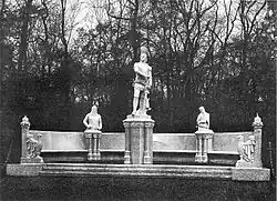 - ↑ Denkmalgruppe zum Brandenburger Markgrafen und (ersten) Kurfürst Ludwig II. der Römer (1328–1365); Nebenfiguren: Ritter Hasso der Rote von Wedel (links) und den Landeshauptmann Friedrich von Lochen (rechts). Die Gruppe wurde am 14. November 1900 enthüllt.