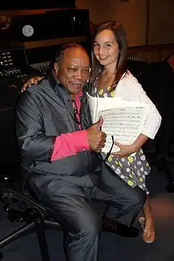 - ↑ Quincy Jones: Me and emily bear signing the contract – it's official! How blessed we all are to have this baby-lady, Lady Fleeze Kneeze on our planet!!! xoxox Q. In: Facebook/Quincy Jones Account. 15. Dezember 2011, abgerufen am 4. November 2024 (englisch).