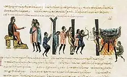 Ooryphas bestraft die kretischen Sarazenen, dargestellt im Madrid Skylitzes