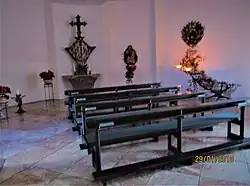 Die Sakraments-Kapelle ist der katholische Andachtsraum mit Tabernakel und liegt rechts vom Altarraum. Altar und Leuchter wurden durch Leopold Hafner geschaffen.