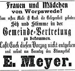 - ↑ Ulrich Schulte-Wülwer: Emmy Meyer. Worpswede 2021, S. 72.