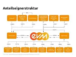Die evm ist ein zu 100 Prozent kommunales Unternehmen, deren Anteilseigner z. B. die Stadtwerke Koblenz GmbH und Kommunen wie der Westerwaldkreis und die Stadt Koblenz sowie dem Stadtwerkeverbund Thüga AG sind.