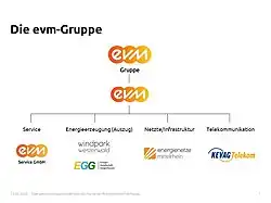 Die evm ist als Unternehmensgruppe aufgestellt. Neben der KEVAG Telekom GmbH gibt es folgende weitere direkte Beteiligungen.