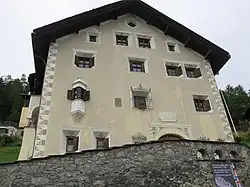 Es liegt an der Via dal Bagn 39 an der Grenze zwischen den traditionellen Dorfteilen Bad und Dorf und ist einer der ersten Exponenten des Heimatstils in Graubünden.