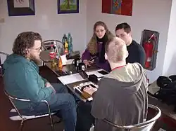 Engel ist ein deutsches Rollenspiel aus dem Verlag Feder & Schwert, das seit 2013 vom Uhrwerk Verlag vertrieben wird[1]. Erdacht und konzipiert wurde es von Oliver Graute, Oliver Hoffmann und Kai Meyer. Es zeichnet sich in erster Linie durch die detailreiche Hintergrundwelt aus, die eine Mischung aus einer mittelalterlich-feudalistischer Gesellschaftsordnung, katholizismusähnlicher Mystik und Cyberpunk-Elementen aus verbotenen Technik-Resten darstellt.
