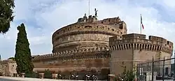 Als die Stadtmauer von Kaiser Aurelian (die Aurelianische Mauer) unter den Kaisern Honorius (395–423) und Arcadius (395–408) vom Magister militum (Heermeister) Stilicho verstärkt wurde, integrierte man das solide gebaute Mausoleum als Zitadelle in die Befestigungen. Im Gotenkrieg im 6. Jahrhundert erkannten der oströmische Feldherr Belisar und der Gotenkönig Totila die Bedeutung des Bauwerks zur Kontrolle der Stadt und bauten es als Stützpunkt aus.