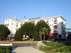 1946 eröffnete das Kasino erneut. Alte Gebäude mussten neuen weichen: Das alte Hôtel des Bains wurde 1949 zu Gunsten des heute noch bestehenden Grand Hôtel des Bains abgerissen. Dieses Luxushotel beherbergte im Herbst 1995 Pierre Fresnay, Yvonne Printemps und den Maler Maurice Utrillo. Der alte Kursaal (sic, auch im Französischen), der schon lange leer gestanden hatte, wurde schließlich 1953 abgerissen. Durch Straßenbaumaßnahmen wurde erreicht, dass der Rosengarten vergrößert werden konnte.[11]