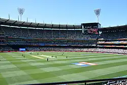 Die darauf folgende, von James Lillywhite angeführte englische Mannschaft bestand ausschließlich aus Profis und brach am 21. September 1876 mit dem P&O-Dampfschiff Poonah nach Australien auf.[14][13] Sie traf auf eine australische XI und erstmals bestanden beide Mannschaften aus elf Spielern. Der erste Test, wie er erst nachträglich bezeichnet wurde, fand ab dem 15. März 1877 im Melbourne Cricket Ground statt. Diesen verlor das englische Team mit 45 Runs.[13] Der Australier Charles Bannerman erzielte in diesem Spiel mit seinem einzigen First-Class-Century (100 Runs) überhaupt das erste Century der Test-Cricket-Geschichte,[14] und bis heute den größten Anteil eines Einzelspielers in einem vollen Test-Innings. England konnte sich aber knapp zwei Wochen später an gleicher Stelle mit einem Sieg von vier Wickets revanchieren.[15][14] Das erste Test-Match in England konnten die Gastgeber 1880 für sich entscheiden.[16] Dies war auch das erste Mal, dass England in voller Stärke, inklusive W. G. Grace, antreten konnte.[17]